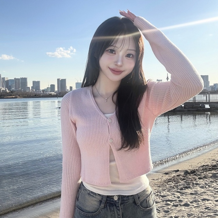 短めの丈のリブカーディガンは、スカートともパンツとも好相性◎